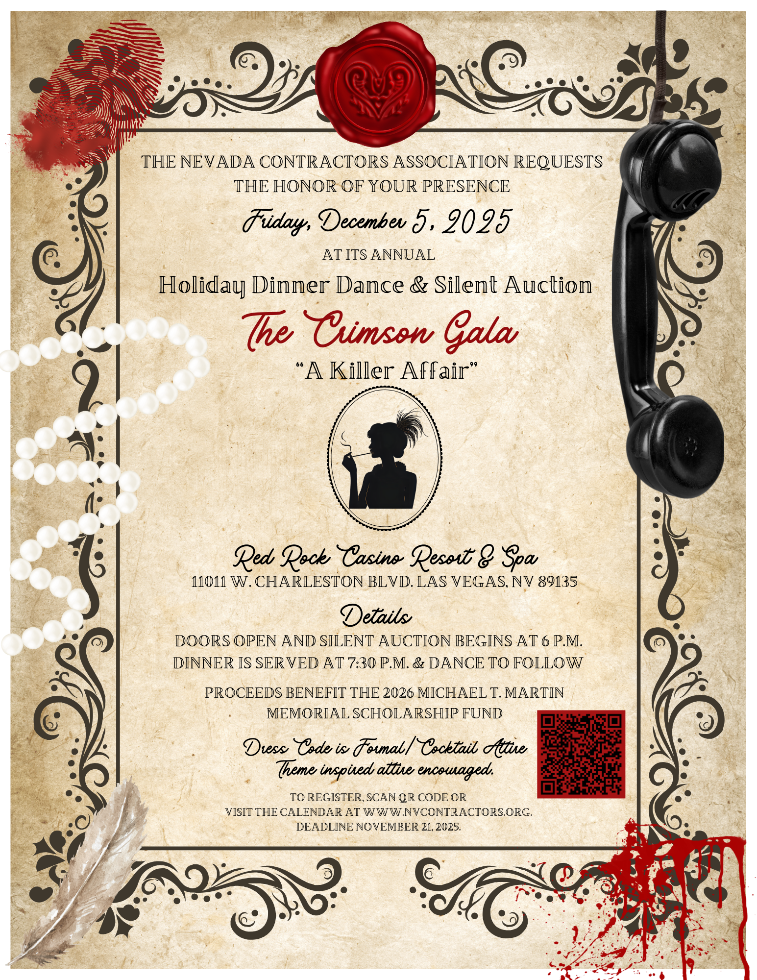 The Nevada Contractors Association requests the honor of your presence Friday, December 5, 2025, at its annual Holiday Dinner Dance & Silent Auction.