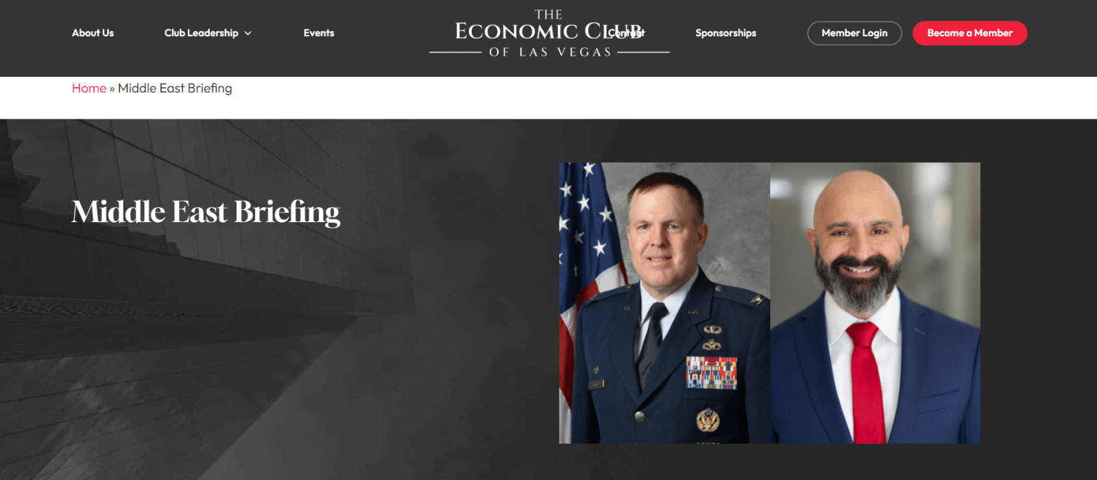 Join us as the Economic Club of Las Vegas welcomes Colonel Jason J. Glynn, Commander for the 99th Air Base Wing—Nellis Air Force Base and Col (ret) Cameron Dadgar, Business Development Executive for Leonardo DRS, to discuss current events in the Middle East and their economic impacts during our happy hour event.