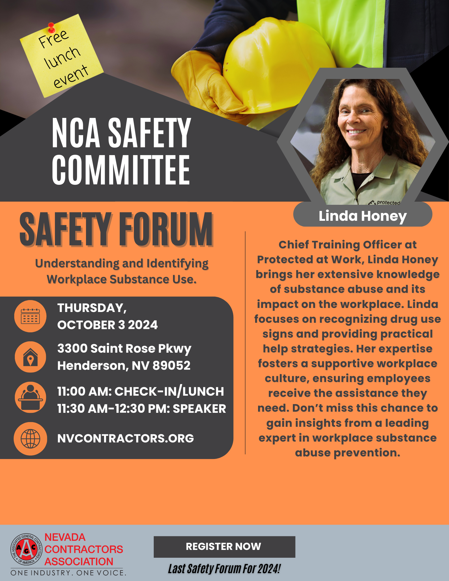 Don’t miss this opportunity to hear from Linda Honey, Chief Training Officer at Protected at Work. Linda will share her extensive knowledge on recognizing and responding to workplace substance use, offering practical strategies to foster a supportive and safe work environment. Sponsorship Opportunities Interested in sponsoring this event? Sponsorship opportunities are available, providing your organization with visibility and a chance to contribute to this important cause. Register your sponsorship today!