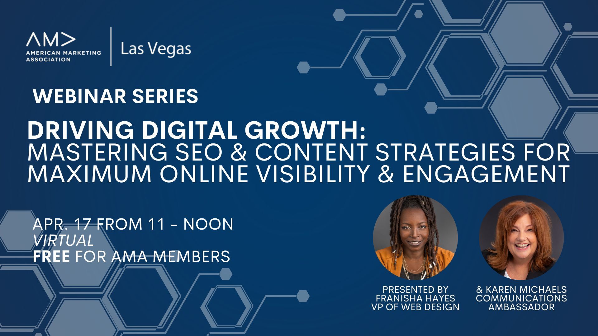 @ Join AMA Las Vegas to master the science of SEO and content strategies for maximum visibility and engagement. Led by seasoned experts and digital marketing strategists Franisha Hayes and Karen Michaels, this workshop is your gateway to conquering the digital landscape and driving exponential growth for your brand or business. In this immersive experience, […]
